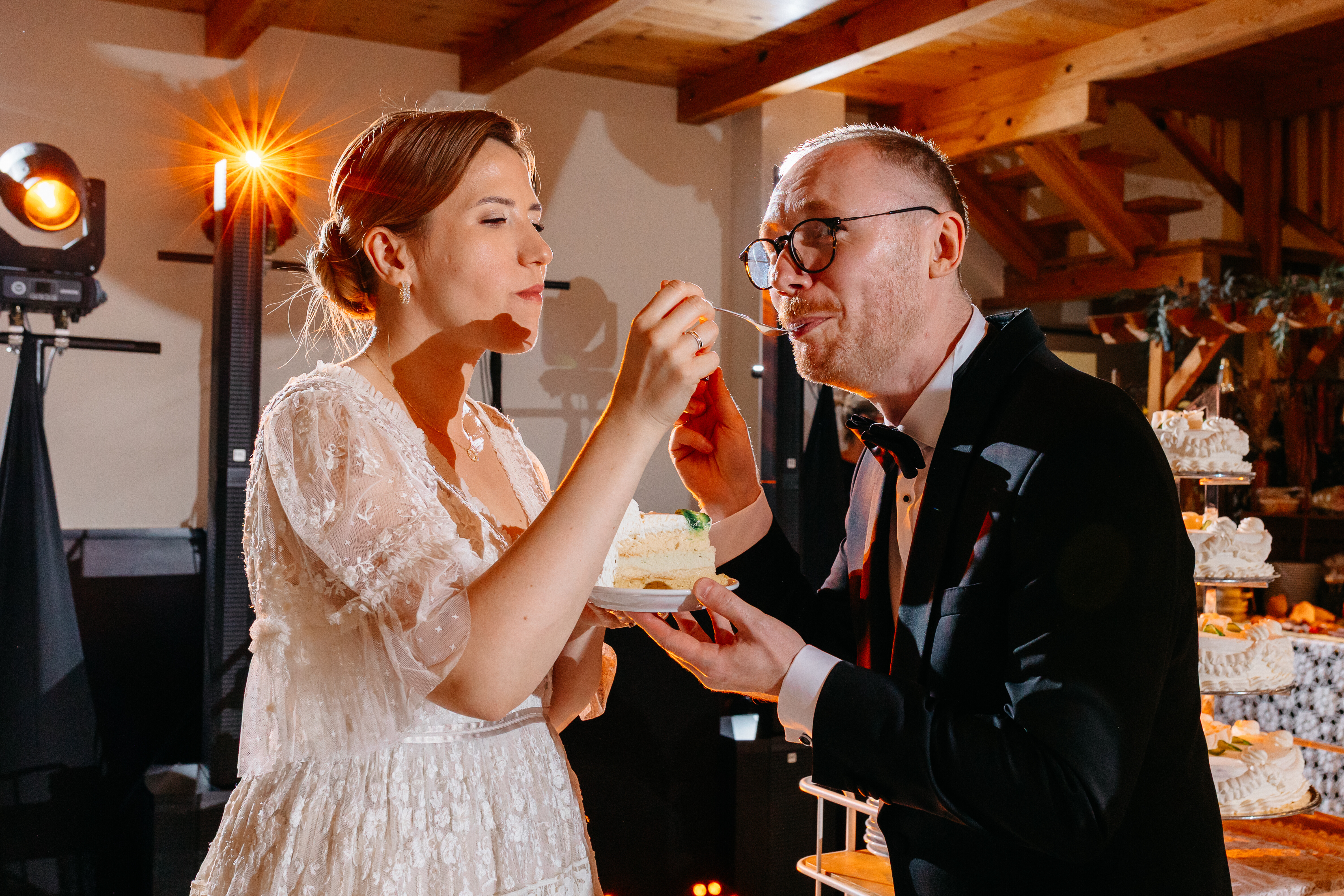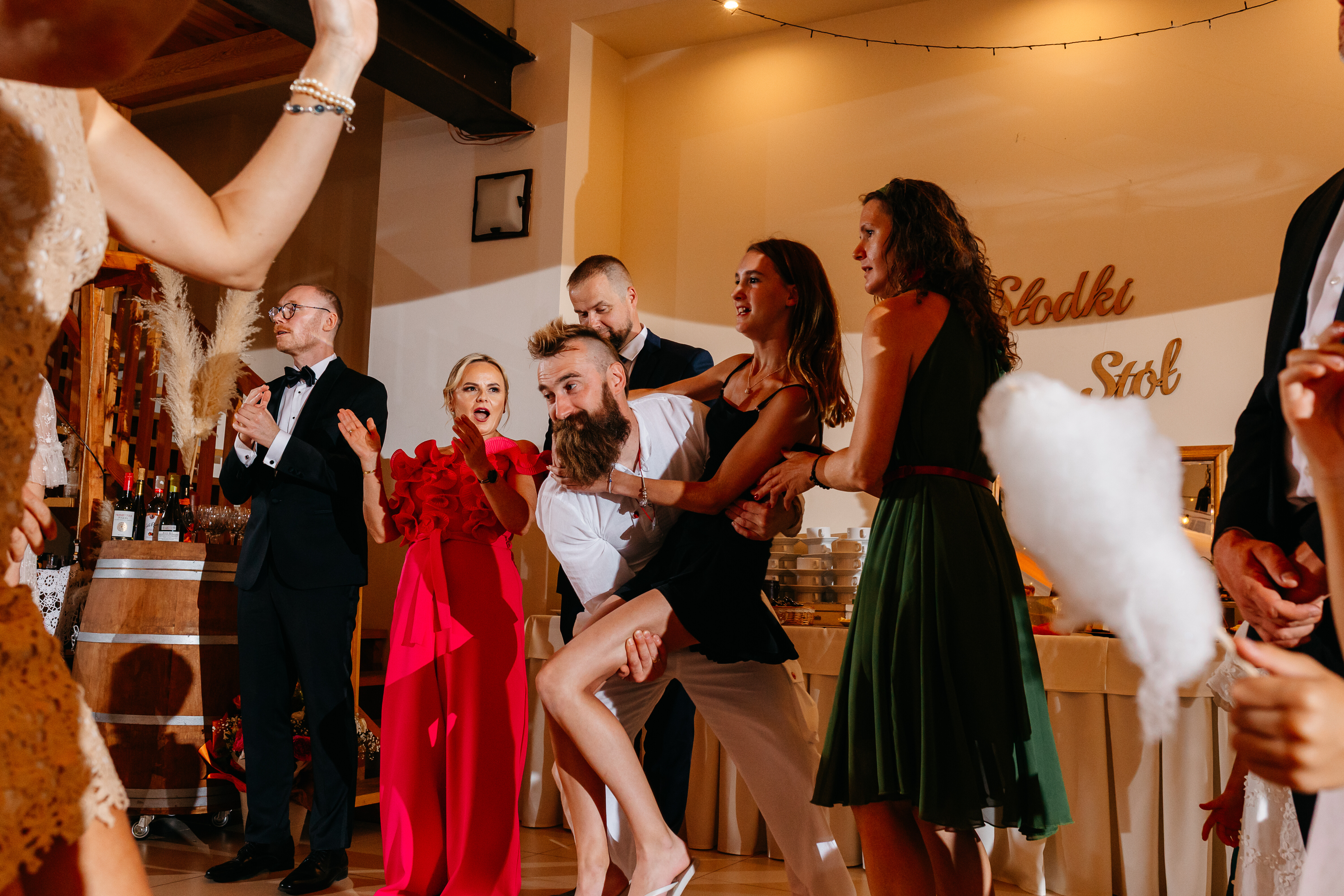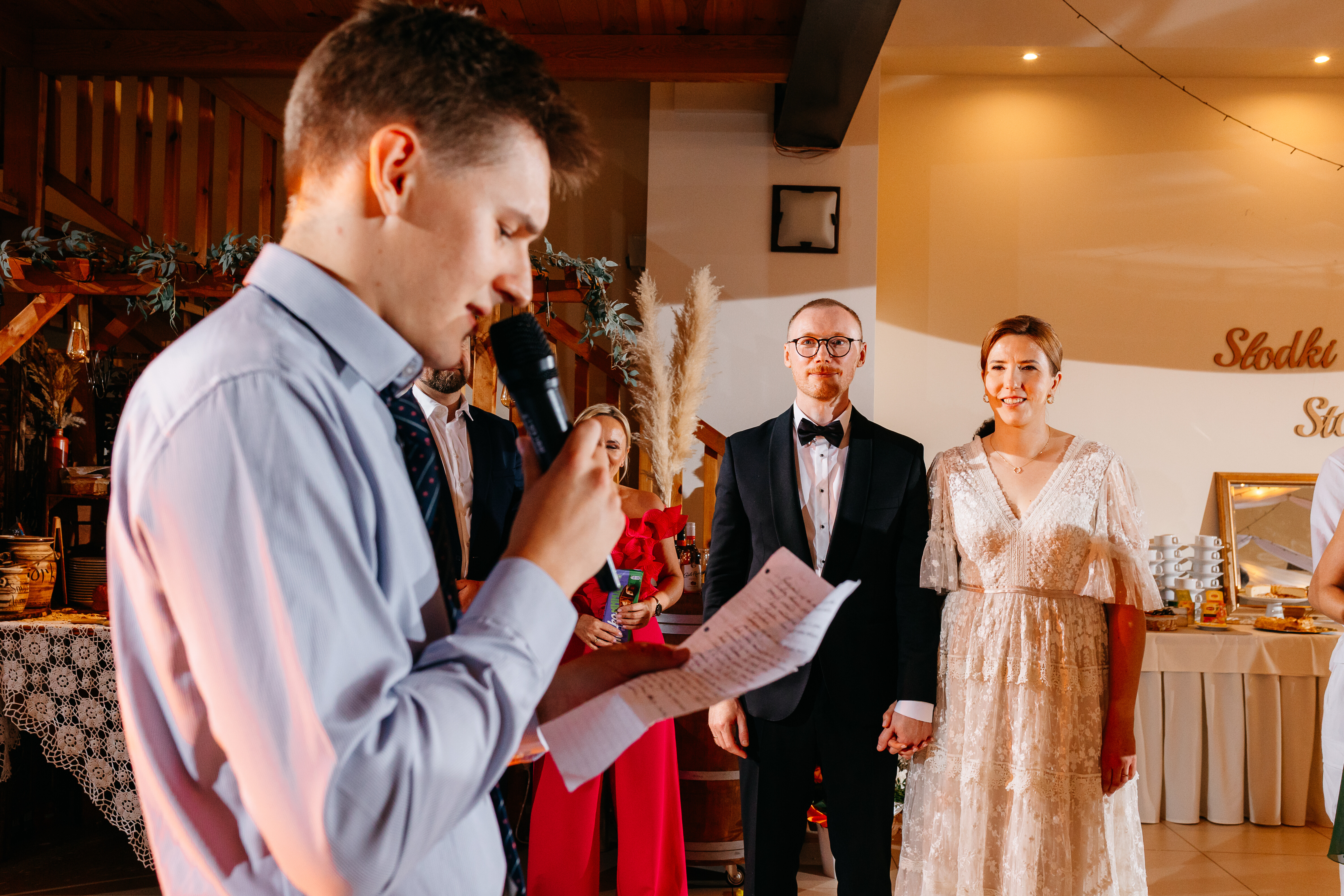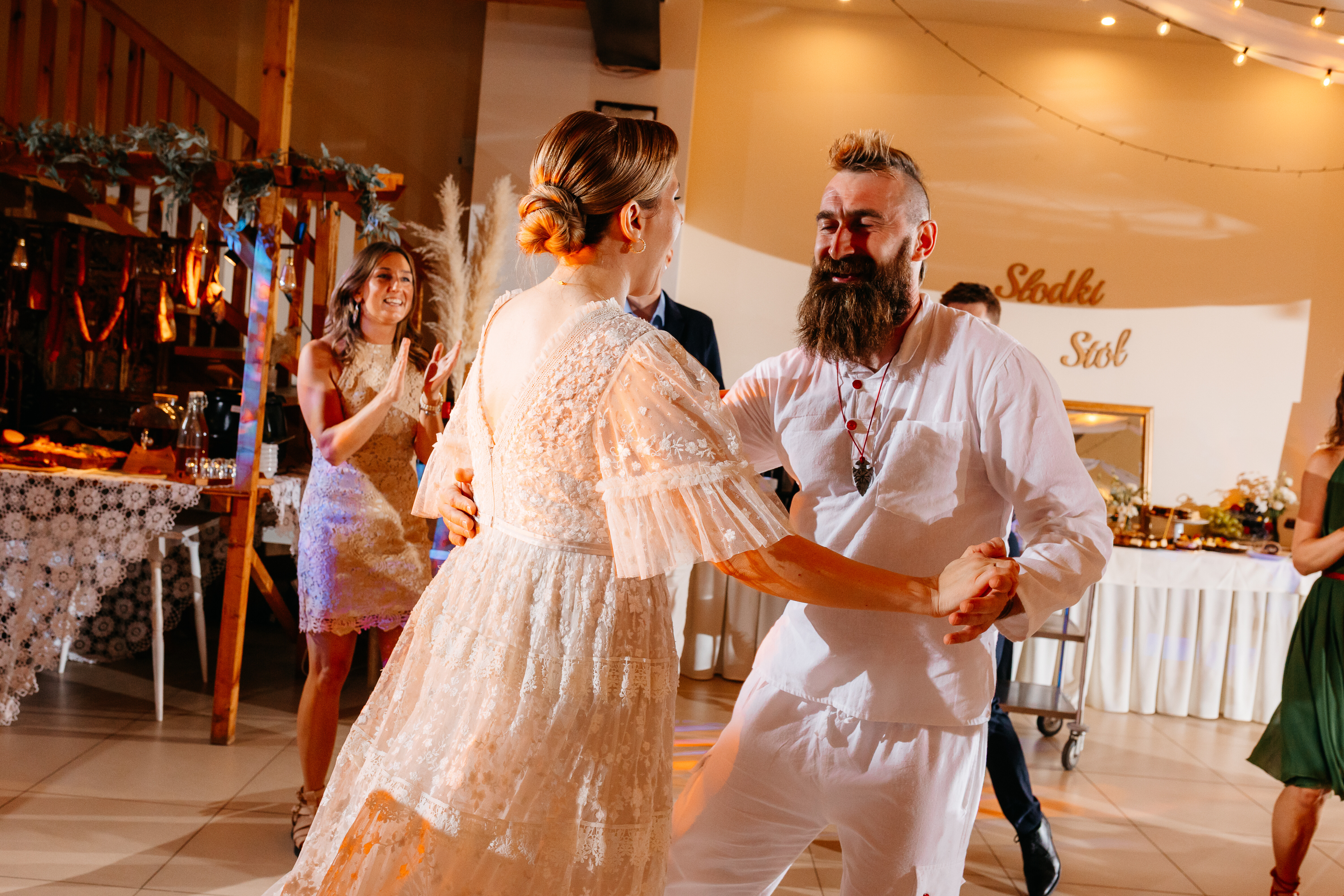 Wesele pod Stargardem miało w sobie coś z magicznego, letniego wieczoru. Nie było pośpiechu, była za to świetna zabawa i mnóstwo szczerych rozmów przy stole. To właśnie w takich chwilach - gdy słońce już zaszło, a salę wypełniło ciepłe, nastrojowe światło - widać było najlepiej, jak zgraną są parą.